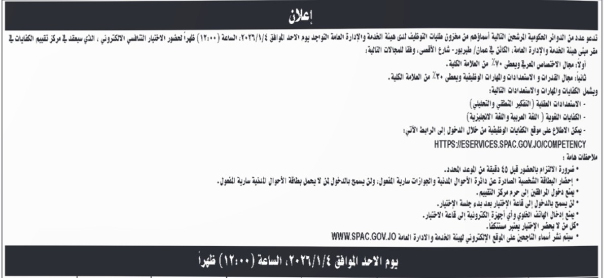 تدعو عدد من الدوائر الحكومية، اليوم الثلاثاء، التالية أسماؤهم لحضور الاختبار التنافسي.