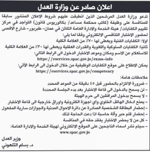 اعلنت دوائر حكومية اليوم الثلاثاءالمرشحين الذين انطبقت عليهم شروط الاعلان المنشور سابقا لحضور الاختبار التنافسي.