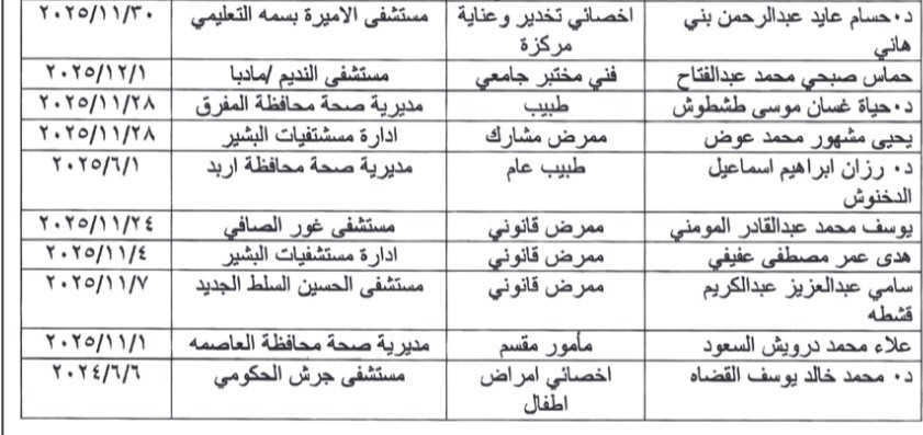 فاقدون لوظائفهم في وزارة الصحة  أسماء
