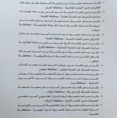 أصدر وزير الداخلية، قرارا يقضي بإجراء تشكيلات إدارية واسعة شملت عددا كبيرا من الحكام الإداريين في مختلف محافظات المملكة.
