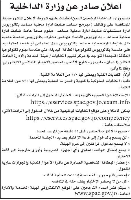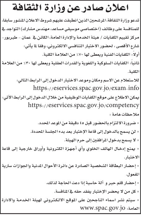 دعت دوائر حكومية، اليوم الاثنين المرشحين الذين انطبقت عليهم شروط الاعلان المنشور سابقا للامتحان التنافسي.