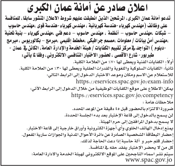 دعت دوائر حكومية، اليوم الاربعاء المرشحين الذين انطبقت عليهم شروط الاعلان المنشور سابقا للامتحان التنافسي.