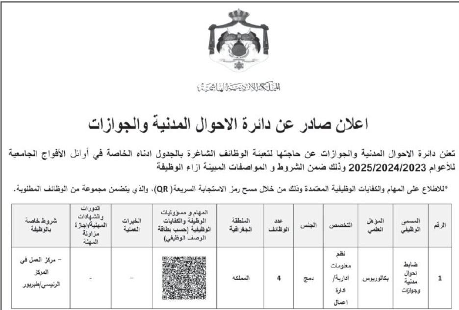 اعلنت دوائر حكومية اليوم الاثنين عن حاجتها لتعبئة وظائف شاغرة.