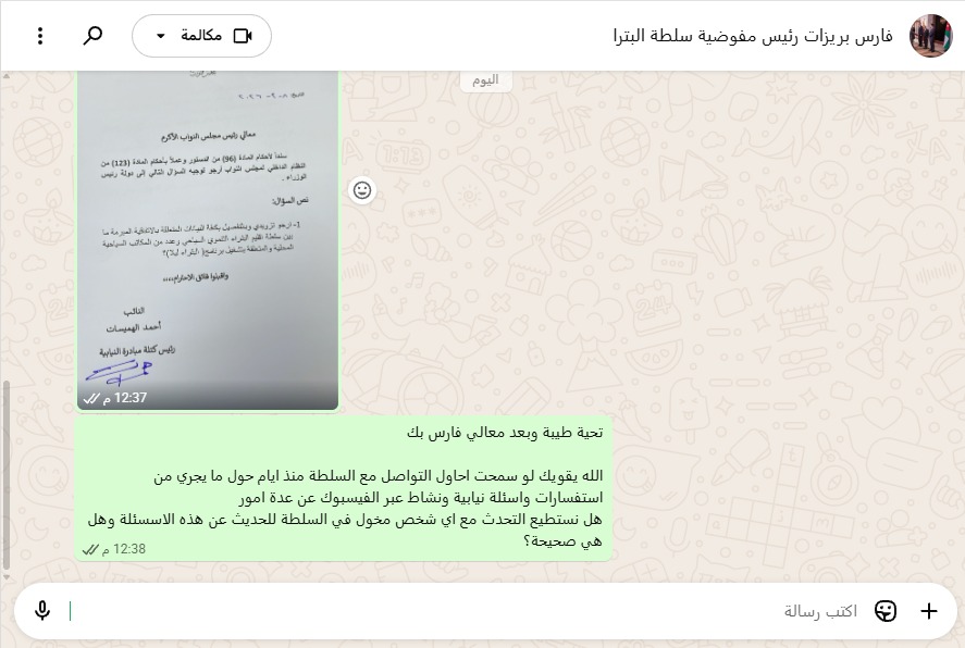 أخبار البلد تواصلت مع رئيس سلطة اقليم البترا فارس بريزات من أجل اخذ رأيه وانطباعه حول ما تم تناوله في سؤال النائب، وقدمنا استفسارات حول الاسئلة التي تم توجيها ولكنه كالعادة لم يتم الرد، وفي الوقت ذاته قامت اخبار البلد بارسال الاستفسارات لمسؤول الاعلام في سلطة اقليم البترا يوسف الشماسين ولكنه وللاسف لم يرد على الاستفسارات التي ارسلت عبر الواتساب الى هاتفه مثلما فعل رئيس السلطة فارس بريزات.
