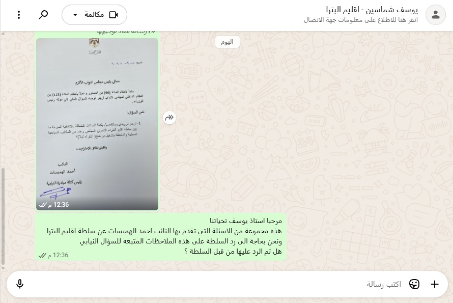وهذه المرة النائب احمد الهميسات وهو نائب عماني دخل على خط ووجه استفسارات نارية لرئيس وسلطة اقليم البترا طالبهم بالرد عليها خلال الفترة القانونية للنظام الداخلي.