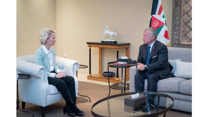 خلال لقائه رئيسة المفوضية الأوروبية.. الملك يؤكد ضرورة وقف الحرب على غزة