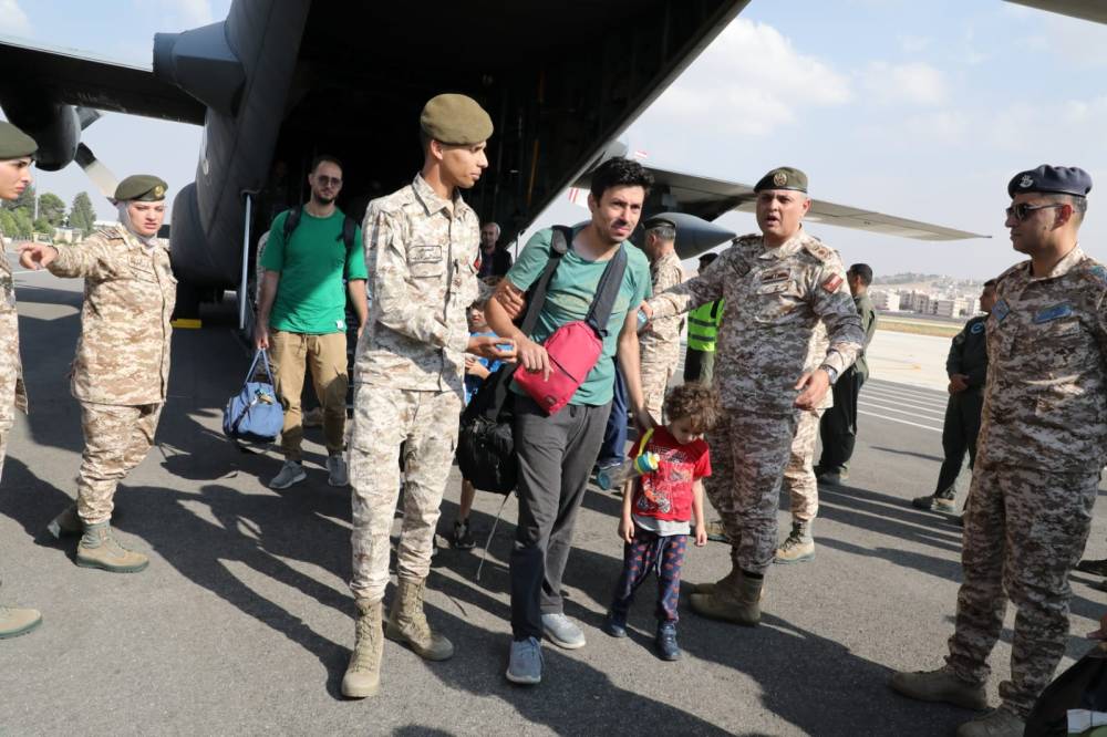 وصول 53 اردنيا على متن احدى طائرات سلاح الجو الملكي بعد ان تم إجلاؤهم يوم أمس من قطاع غزة إلى مصر عبر معبر رفح.