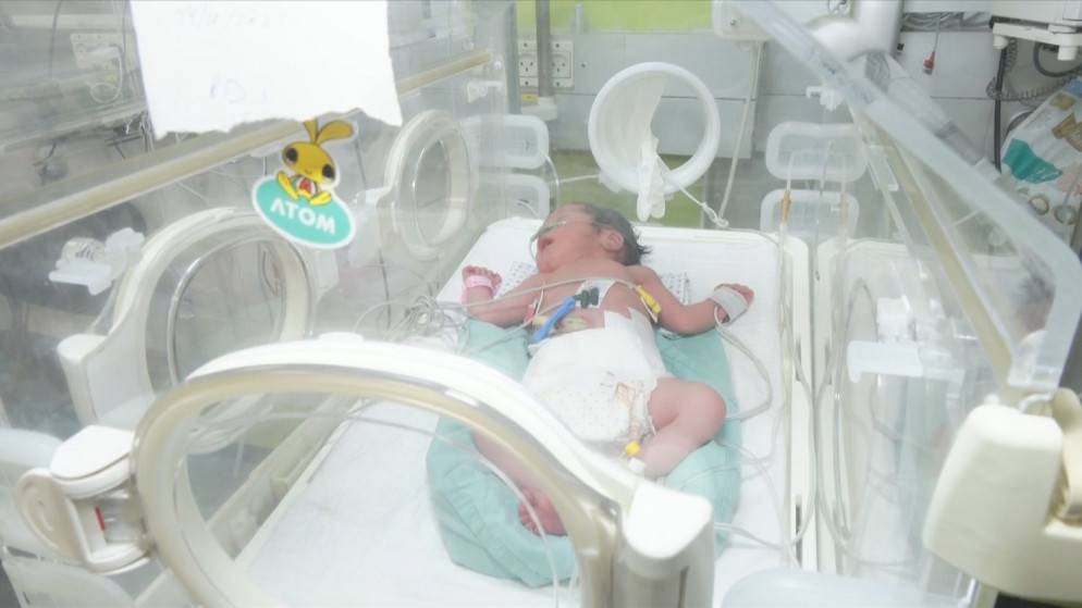 قصفوها والجنين في بطنها .. طفل فلسطيني يولد يتيما