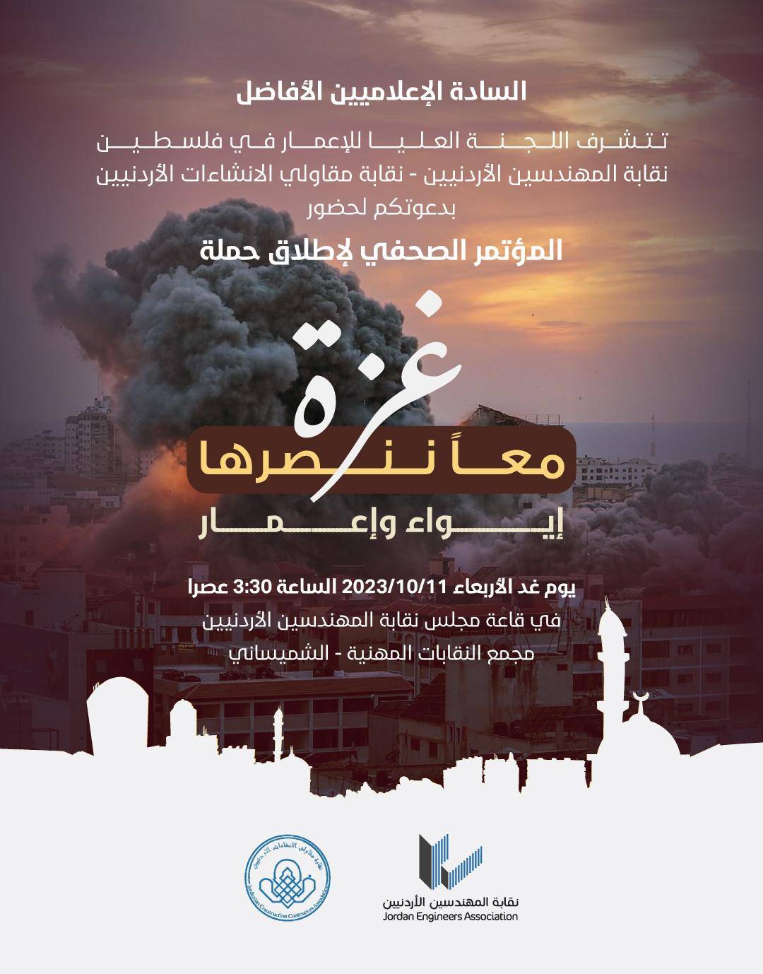 نقابتا المهندسين والمقاولين تعقدان مؤتمراً صحفياً للإعلان عن بدء حملات مساعدات لغزة