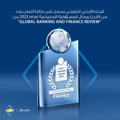 البنك الأردني الكويتي يحصل على جائزة أفضل بنك في الأردن في مجال المسؤولية الاجتماعية لعام 2023 من "Global Banking and Finance Review "