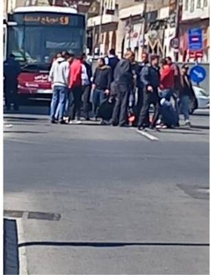 حادث تصادم بين دراجة نارية واحدى حافلات الباص السريع