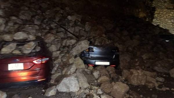 انهيارات صخرية على طريق وادي شعيب