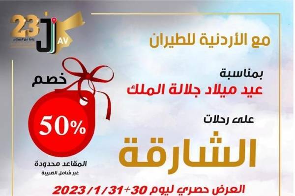 بمناسبة عيد ميلاد الملك .. عرض حصري من الاردنية للطيران إلى الشارقة