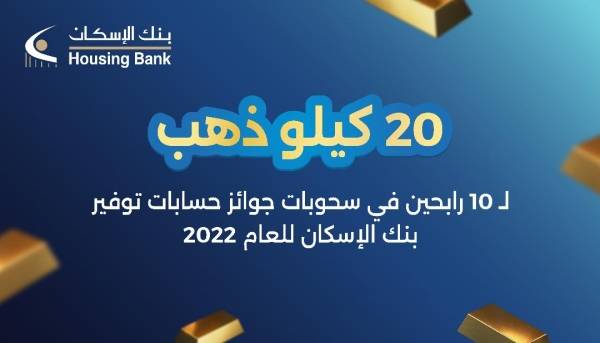 20 كيلو ذهب لـ 10 رابحين في سحوبات جوائز حسابات توفير بنك الإسكان للعام 2022
