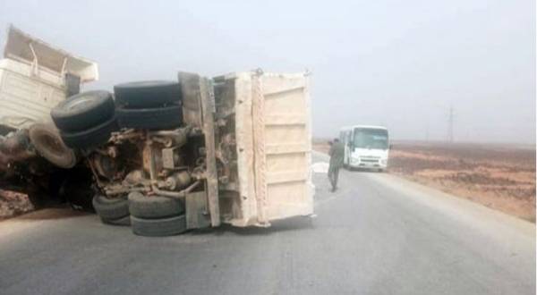 تدهور "تريلا" محملة بالفوسفات على الطريق الصحراوي