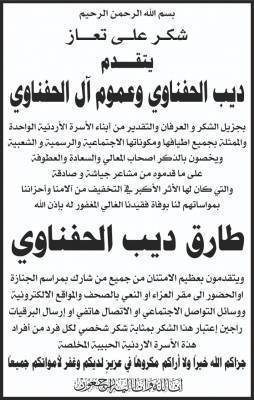 شكر على تعازِ بوفاة "طارق ديب الحفناوي"