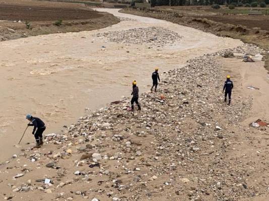 بالصور البحث عن المفقود في سيل وادي القمر في الزرقاء
