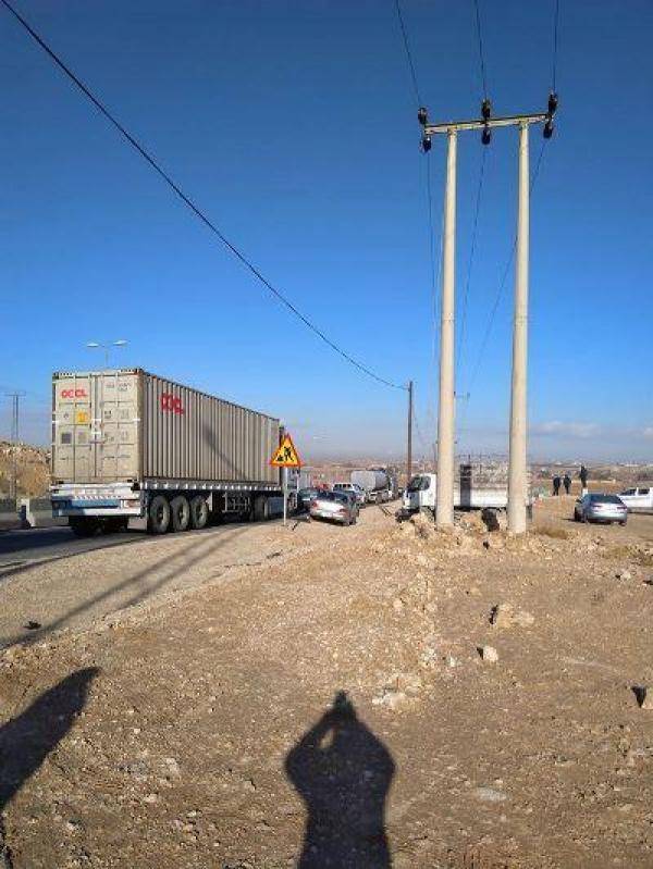 تصادم شاحنتين يغلق الطريق الصحراوي