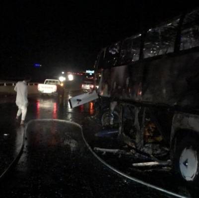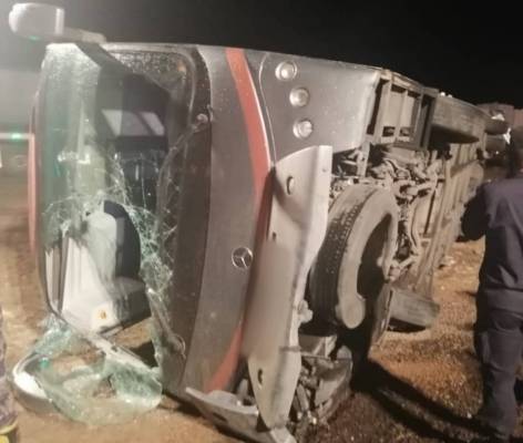 11 إصابة لسياح واردنيين إثر تدهور حافلة سياحية في العقبة (صور)