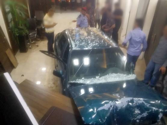 6 اصابات احداها بليغة في حادث اقتحام مركبة لمحل بالمقابلين (صور)