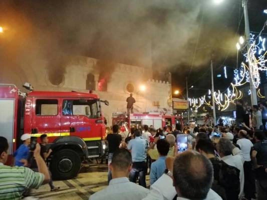 شاهد بالفيديو والصور .. حريق في الجامع الحسيني بوسط البلد