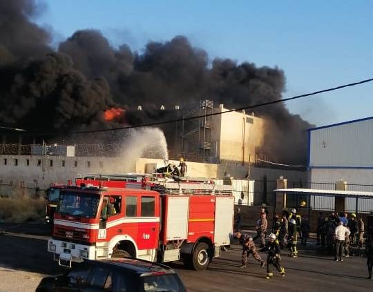 اربد :حريق ضخم في مصنع للإسفنج (فيديو وصور)