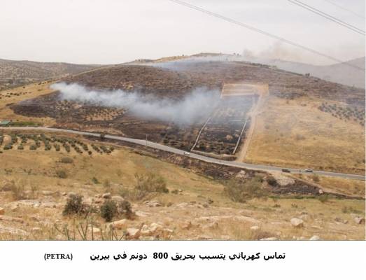 تماس كهربائي يتسبب بحريق (800) دونم في بيرين