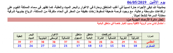 نشرة جوية خاصة بالاسبوع الأول من شهر رمضان الفضيل..صورة