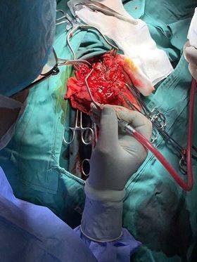 فريق طبي يجري عملية ناجحة لشاب تعرض لضربة صاروخ (صور)