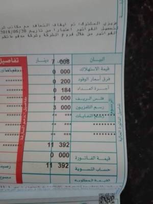 خطأ بالطباعة يرفع رسوم التلفزيون على فاتورة الكهرباء لـ(3) دنانير ـ شاهد الصورة