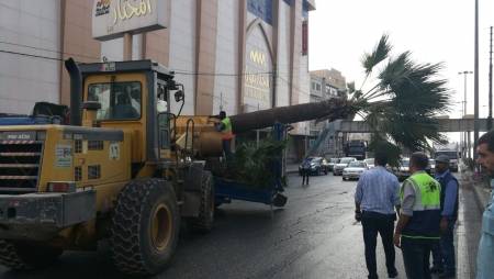 خلع أشجار واشنطونيا من شارع الملكة رانيا العبدالله وزراعتها بمواقع أخرى