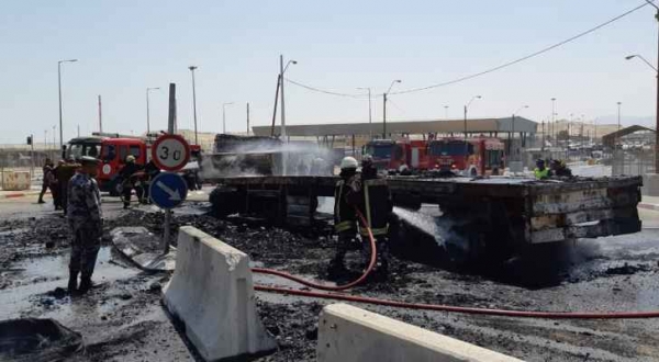 فرق إطفاء من الأردن وفلسطين والإحتلال يتعاملون مع حريق في جسر الملك حسين.. صور