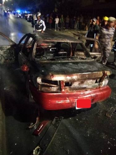 حريق مركبة اعلى " جسر السيفوي " في العاصمة عمان (صور)