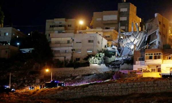 البدء بعملية هدم العمارة التي تعرضت للتفجير بالسلط (صور)