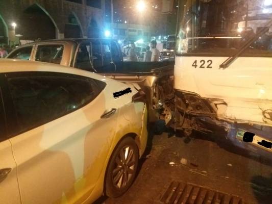 بالصور ...باص يصدم 8 مركبات ويخلف 9 إصابات بعمان