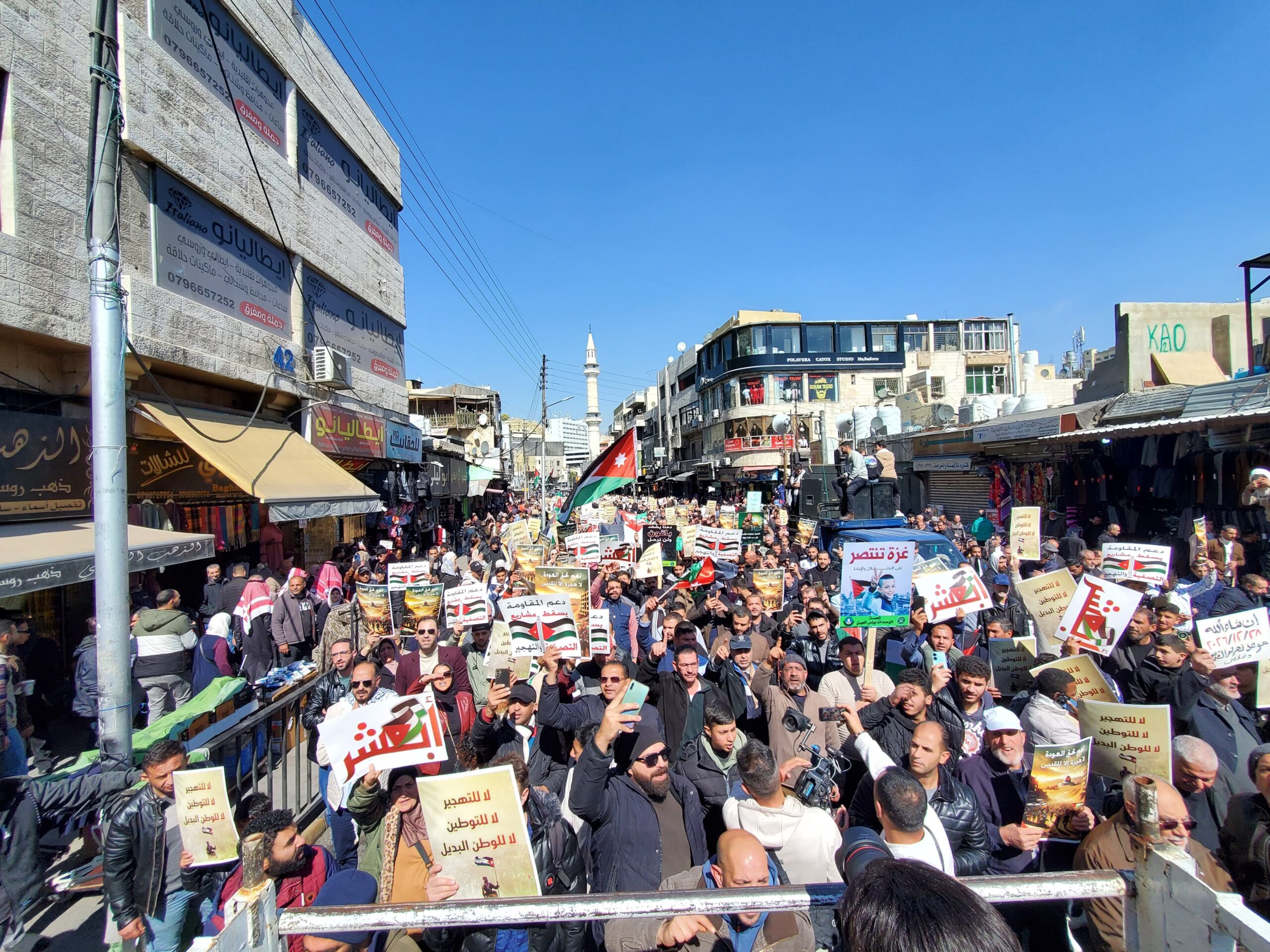 الأردنيون يهتفون: أردنية أردنية ضد الهجمة الأمريكية.. لا للتهجير لا للوطن البديل نعم للمقاومة