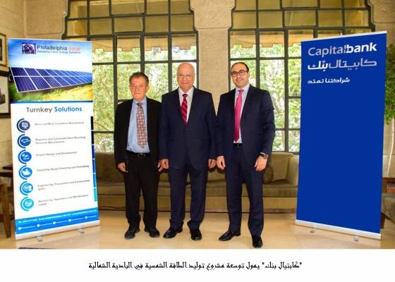 "كابتيال بنك" يمول توسعة مشروع توليد الطاقة الشمسية في البادية الشمالية
