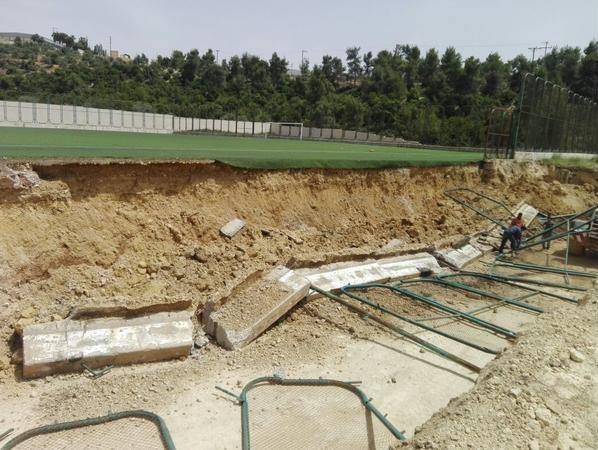 بالصور ..انهيار جزء من جدار ملعب المجمع الرياضي في عجلون