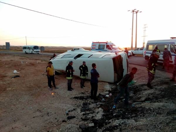 بالصور ... 12 اصابة إثر حادث تصادم بين باص وتنك مياه بالمفرق