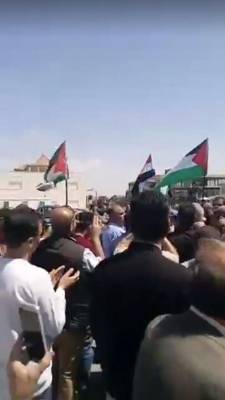 اردنيون يعتصمون امام السفارة الامريكية احتجاجا على العدوان الثلاثي