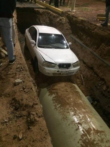 بالصور … مركبة تسقط في مشروع صرف صحي بالعقبة