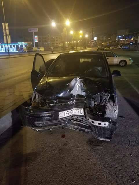 ارتطام سياره بحاجز اسمنتي لعدم توفر اناره في الزرقاء