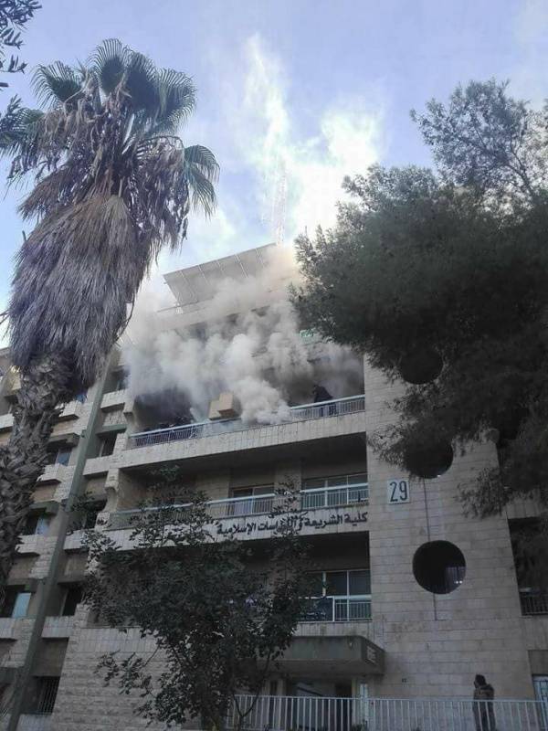 بالصور حريق كلية الشريعة في جامعة اليرموك