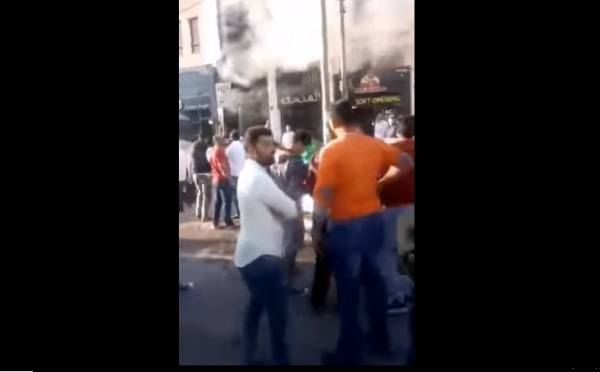 5 اصابات في حريـق مطعم في شارع مكة (فيديو)