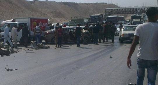 ٦ اصابات بتصادم مركبتين على اوتوستراد الزرقاء