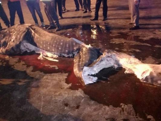 بالفيديو والصور …. اصطياد “حوت بتان” علق بمحرك سفينة في العقبة