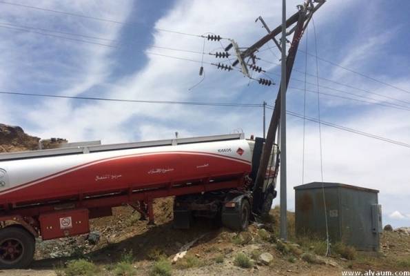 اصطدام شاحنة بعامود ضغط عالي يتسبب بانقطاع التيار الكهربائي عن أحياء بالرمثا