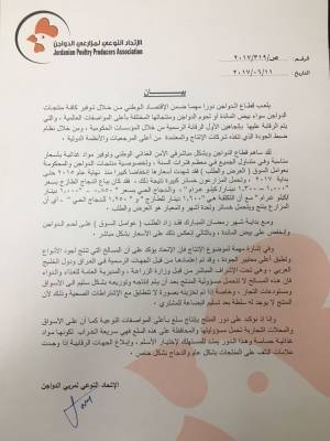 بيان صادر عن الاتحاد النوعي لمزارعي الدواجن
