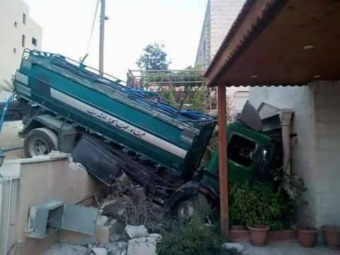 عمان :تدهور صهريج واصطدامه بمنزل ...صور