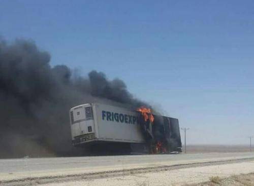 حريق شاحنة على طريق الأزرق